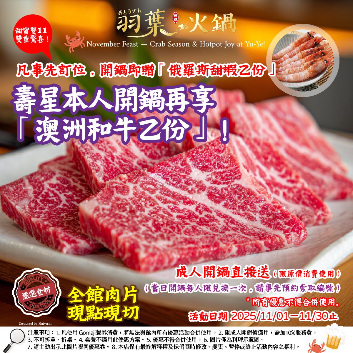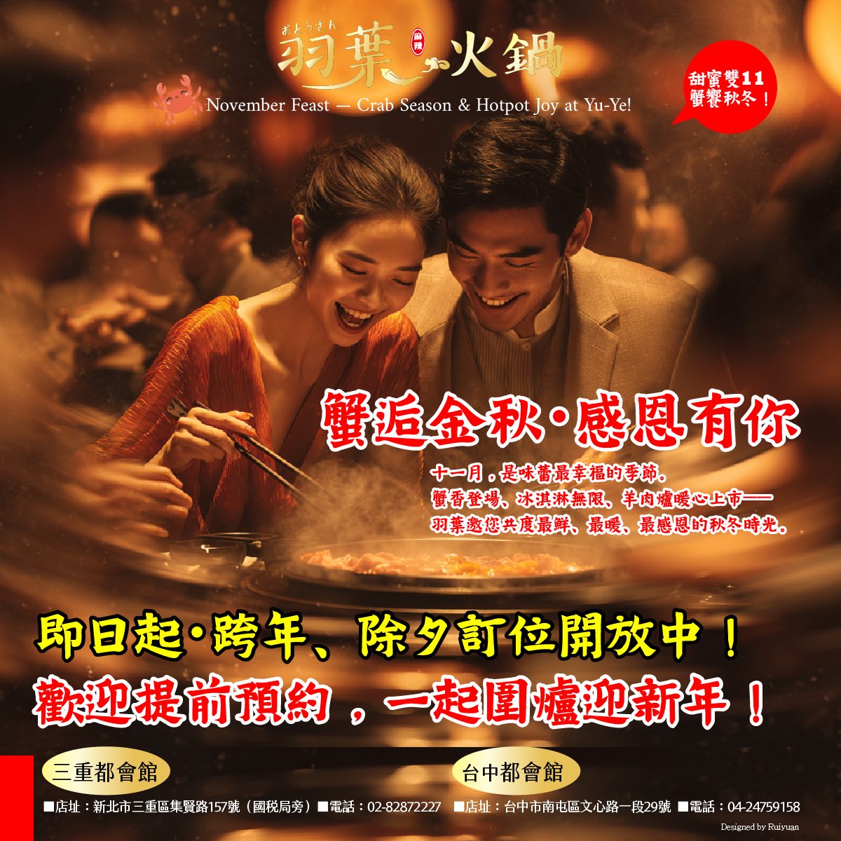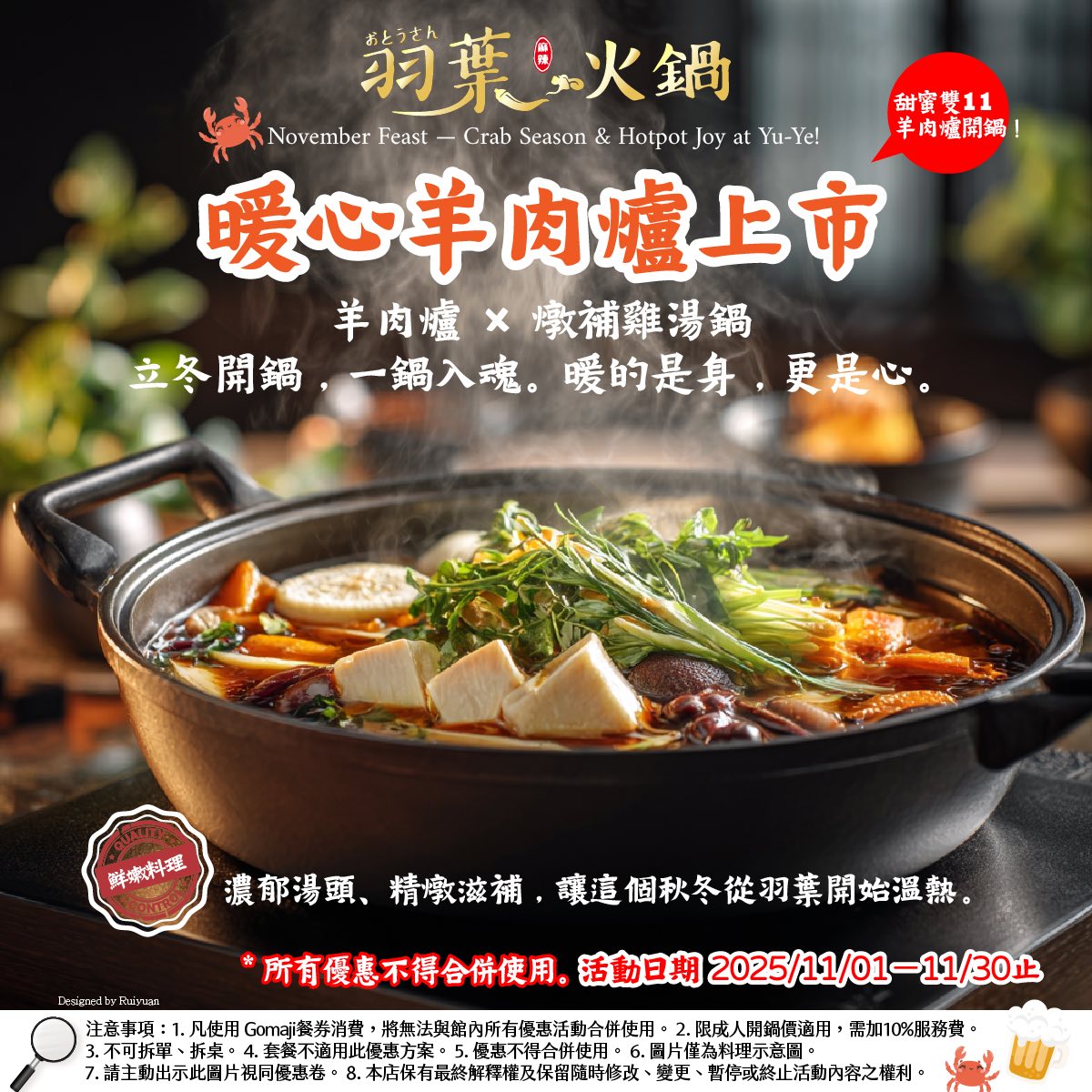蟹香登場、冰淇淋無限、羊肉爐暖心上市——羽葉邀您共度最鮮、最暖、最感恩的秋冬時光。