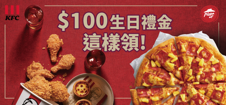為了慶祝會員的生日,必勝客與肯德基將在會員生日前 7 天發送新臺幣100元生日禮金(必勝客和肯德基各50元,需在生日禮金發送前註冊完畢始可獲得,單筆消費滿$79 即可現折)。每年,會員都能在生日前一週獲得這100元生日禮金,只要在點餐前,登入會員帳戶查詢優惠券,並出示給門市店員掃描即可使用。如果未收到生日禮金,則可以聯繫客服詢問。